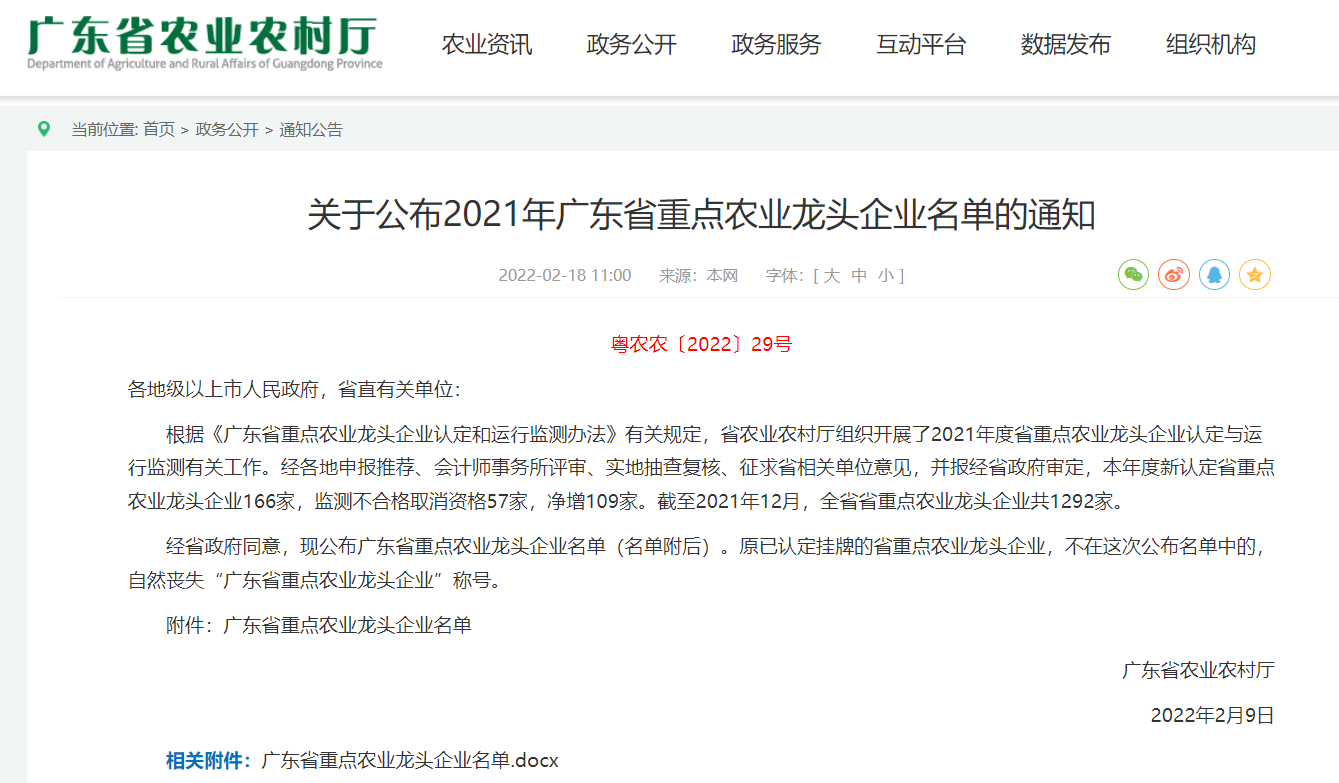2022-0219无尽食品再次上榜【广东省重点农业龙头企业名单】